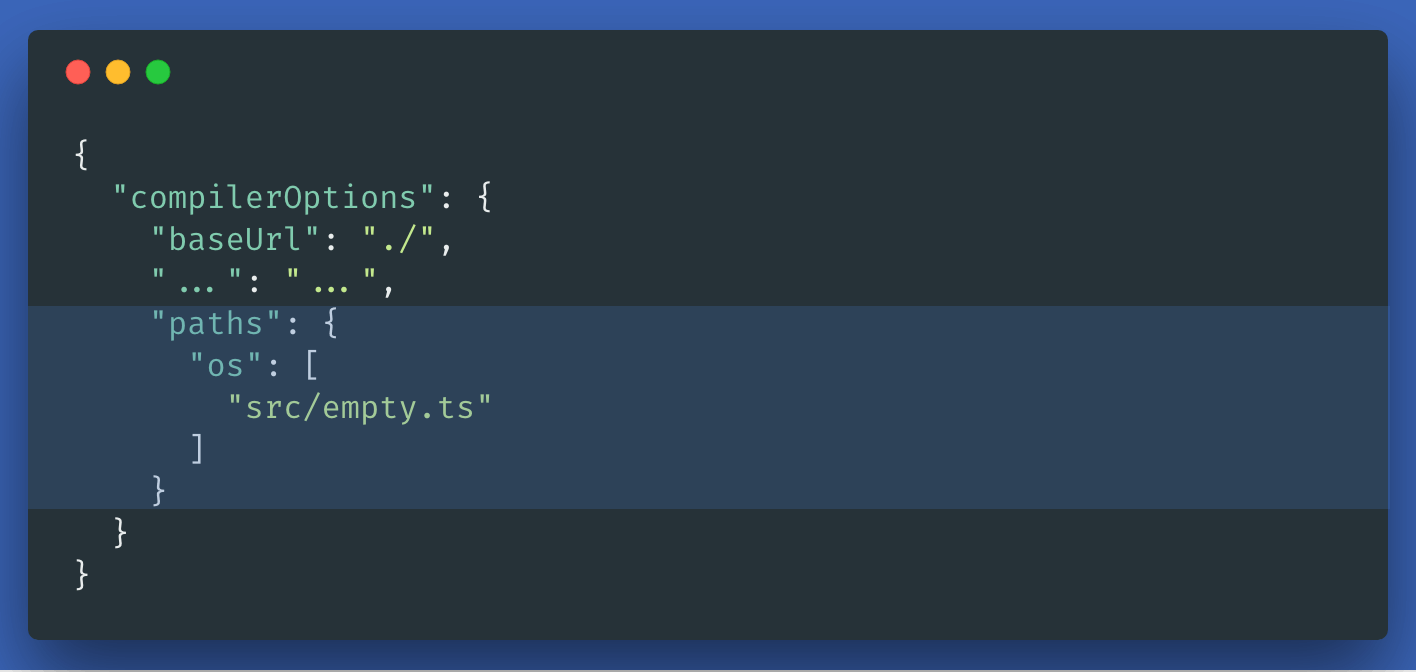 This tells the TypeScript compiler that imports from os should be looked in the file src/empty.ts.