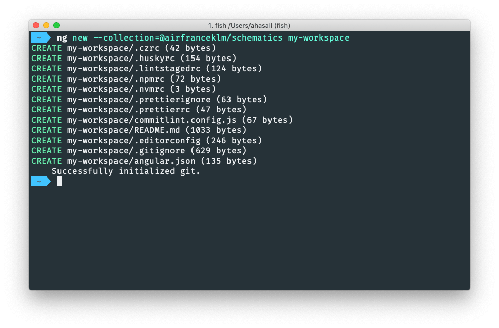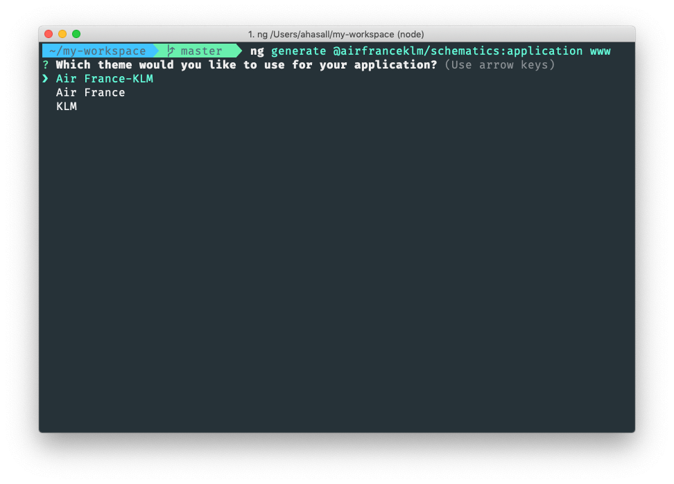 ng new --collection=@airfranceklm/schematics my-workspace